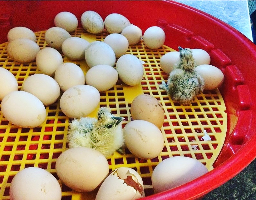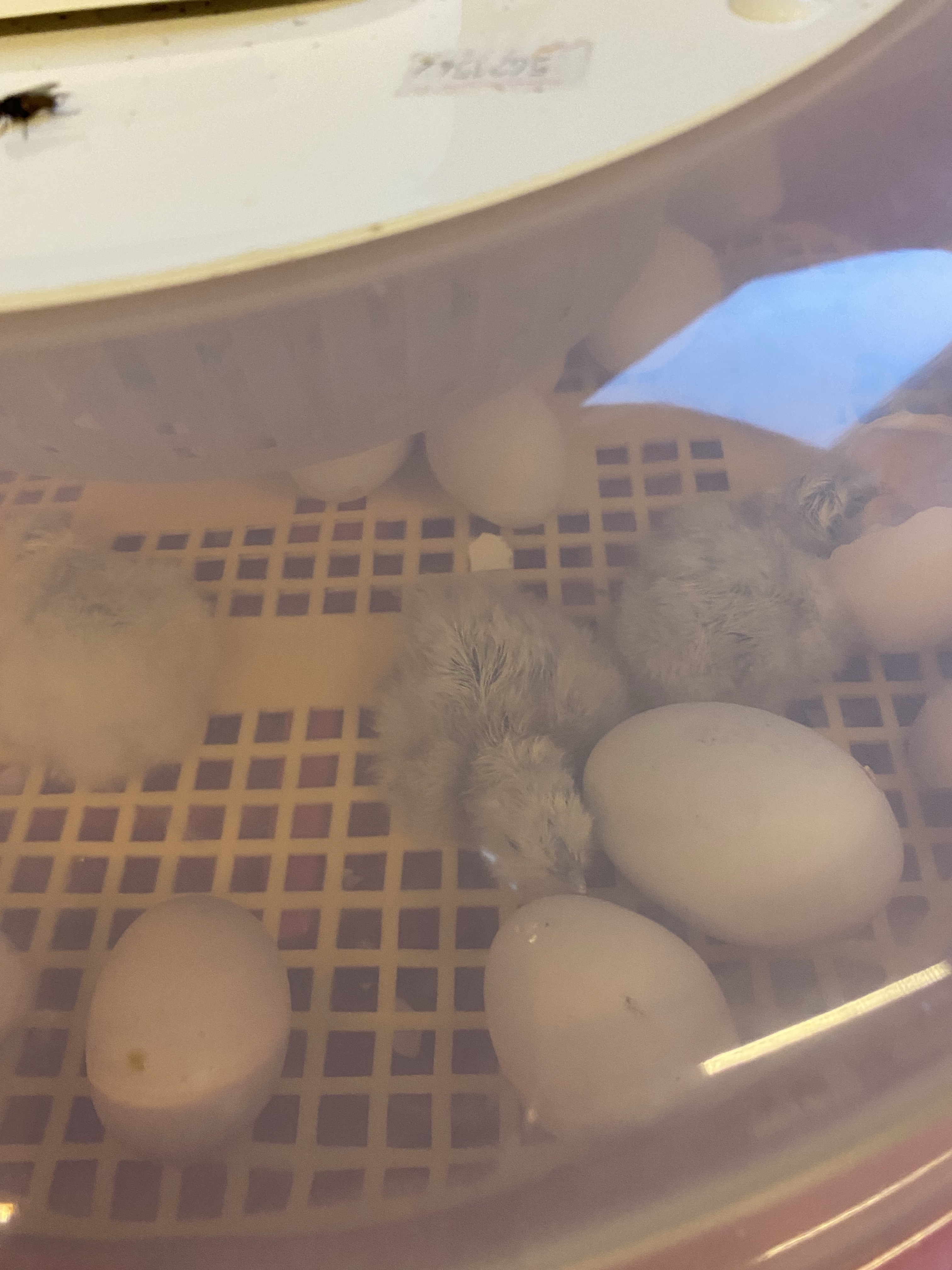 En dan kan het grote wachten beginnen. Rond dag 21 kunnen de kuikentjes de eieren aan gaan pikken. En daarna kan het heel snel gaan. Maar ook nog wel even duren. Het is wel heel belangrijk te benoemen dat je de kuikens niet mag helpen. Ze moeten zelf uit het ei komen. Als een ei is uitgekomen blijven de kuikens, totdat ze helemaal zijn opgedroogd, in de broedmachine.