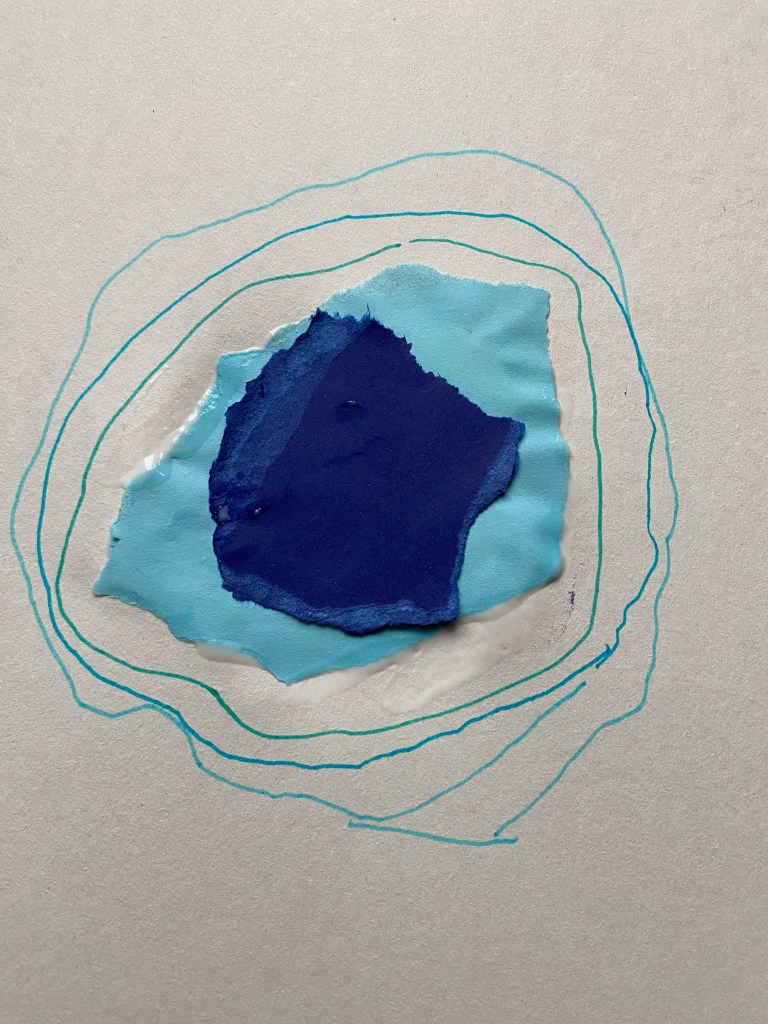 Het mooiste effect is als je voor óf warme (rood, geel, oranje) óf koude (blauw, groen, paars) kleuren kiest. Maar uiteraard mag dat zelf bepaald worden. Het doel van deze activiteit is het effect van verschillende materialen laten zien in een ‘‘kunstwerk’. Nogmaals, het resultaat is niet het belangrijkste!